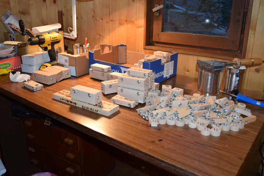 O prázdninách 2015 jsem získal konečně všechny dodavatele i již certifikovaný materiál pro hračku a začal pomalu vyrábět. Na chvilku vše ustalo, získal jsem jinou zakázku a tak jsem začal uvažovat o založení rodinné firmy. Nakonec jsme vyrobili první várku Základní sestavy I (zde) a těsně před vánoci 2015 jsme ji šli poprvé představit na trh, nejdříve Pardubice, pak Praha. Přihláška do Norimberka, na mezinárodní veletrh hračkářského průmyslu v únoru 2016 nám nevyšla, bylo pro nováčky již plno. V zápětí jsme ale získali velkou zakázku pro školky a její realizace nám zabrala takřka měsíc a půl. To byl poslední impuls k založení rodinného závodu a moje Péťa přešla na plný úvazek do společného podnikání. Pro školky byl vyvinut nový set s názvem Combo box (zde), ale v hlavě už bylo plno dalších.