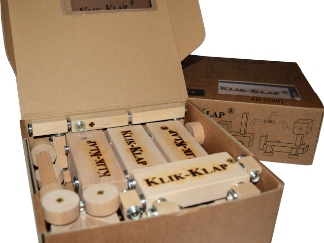 Těchto 40 dílů se specifickým rozmístěním 60 párů Klik-Klap druků připevněných pomocí 120 vrutů umožňuje vytvořit na 3 299 různých sestav.